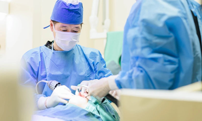 治療計画に納得いただけたら、インプラントを顎の骨に埋入するための手術を実施します。手術中は、3Dナビゲーションシステムを用いてリアルタイムにドリルの位置を把握することにより、精度の高い治療を提供します。
